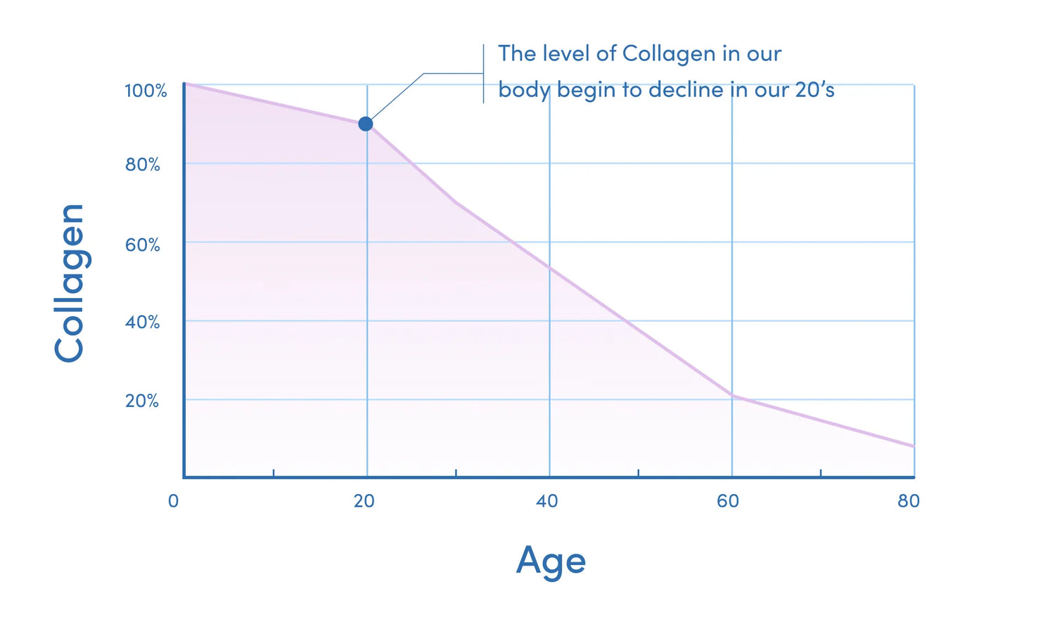 Your body struggles to replace the collagen you’re losing as quickly as it's breaking down, starting from your 20s. As a result, you lose, on average, 1% of your collagen yearly.